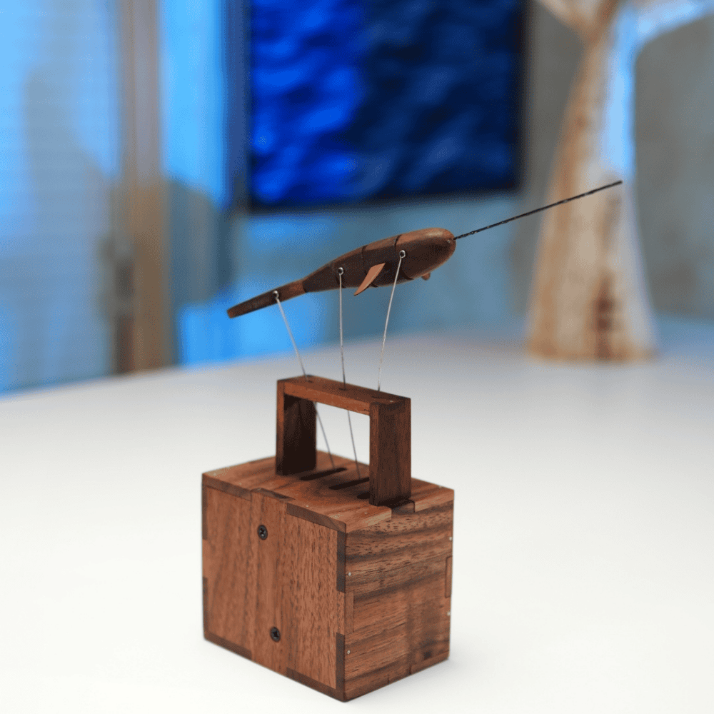 Apportez le rythme des profondeurs marines dans votre espace. Notre baleine en noyer—propulsée par un moteur silencieux et des engrenages imbriqués—monte et descend dans un mouvement lent et tidal, transformant le bruit mental en une cadence régulière et respirante.