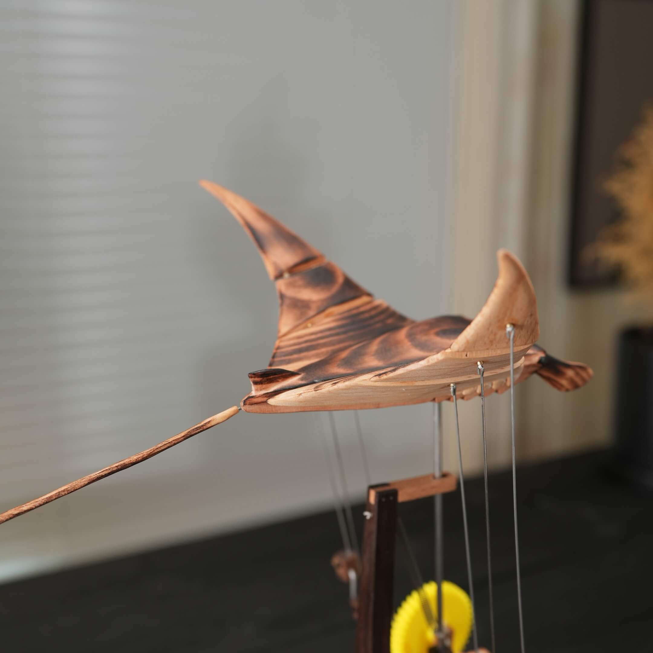 Bring the ocean’s silent ballet to your space. Our walnut manta ray, powered by interlocking gears, glides with every turn of the crank—transforming stress into a calm, flowing rhythm.